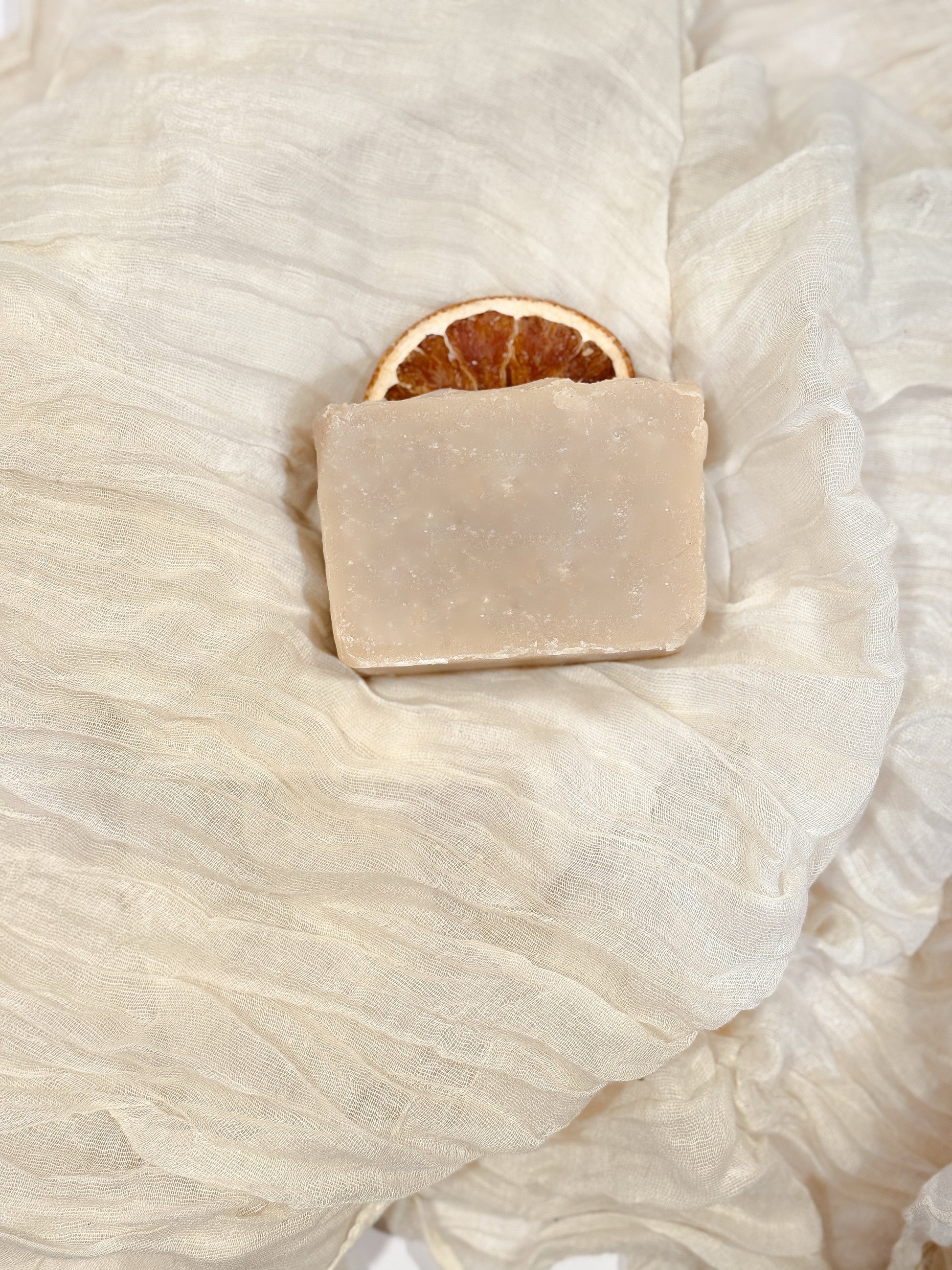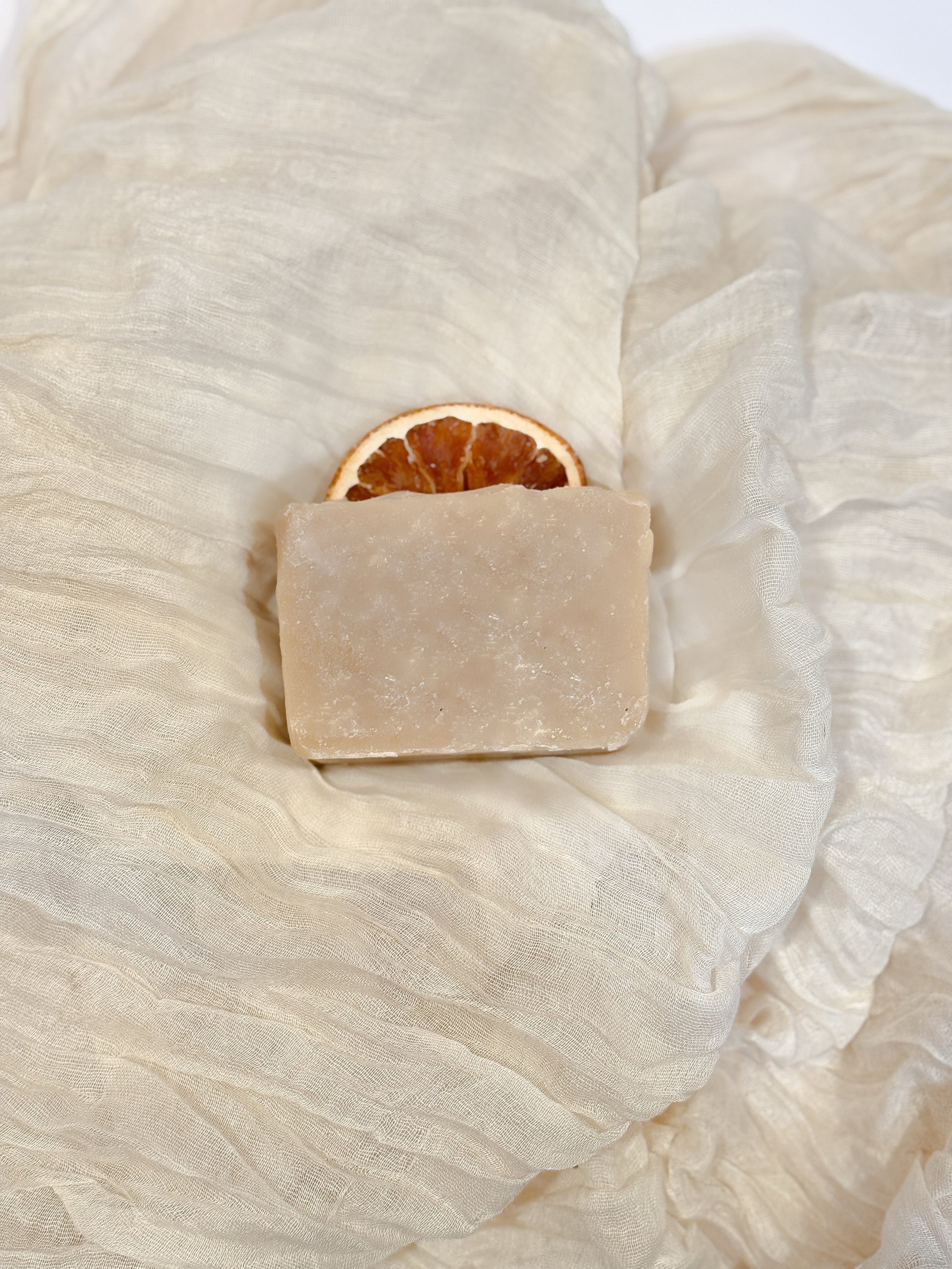 Ingredients: Coconut Oil, Olive Oil, Shea Butter, Sweet Almond Oil, Castor Oil, Sodium Hydroxide (Lye), Coconut Milk, Blood Orange Essential Oil, Kaolin Clay, Fragrance