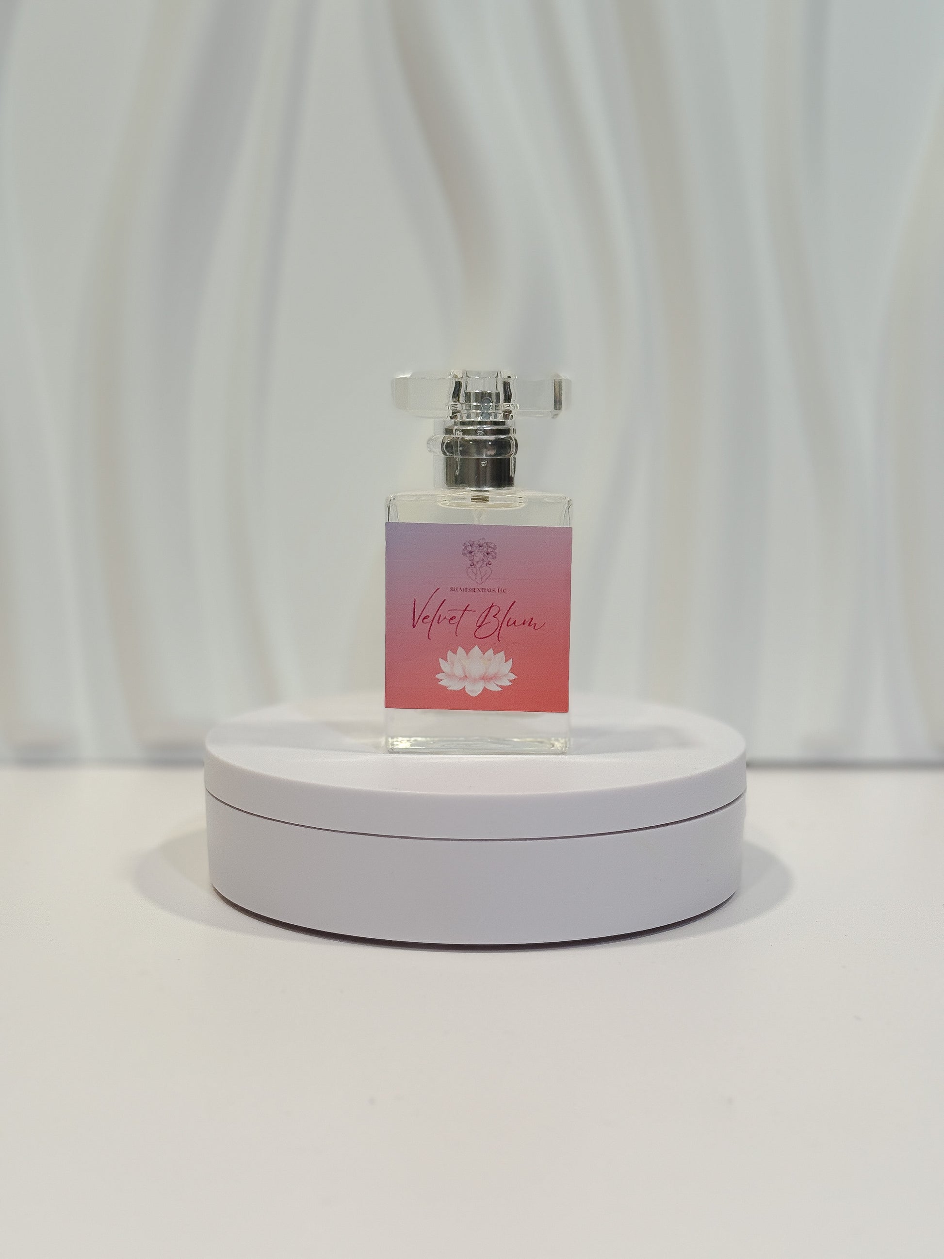 Delicate lotus unfurls in still water, orange blossoms kiss its petals. Whispers of jasmine softens the sweetness. Moonlit violet floats on clouds of pillowy marshmallows, wrapping the florals in a creamy embrace. Sandalwood settles close to the skin, warm and intimate, like silk after dusk. A signature both celestial and grounded, Velvet Blum is your gateway to ethereal, romantic embrace.